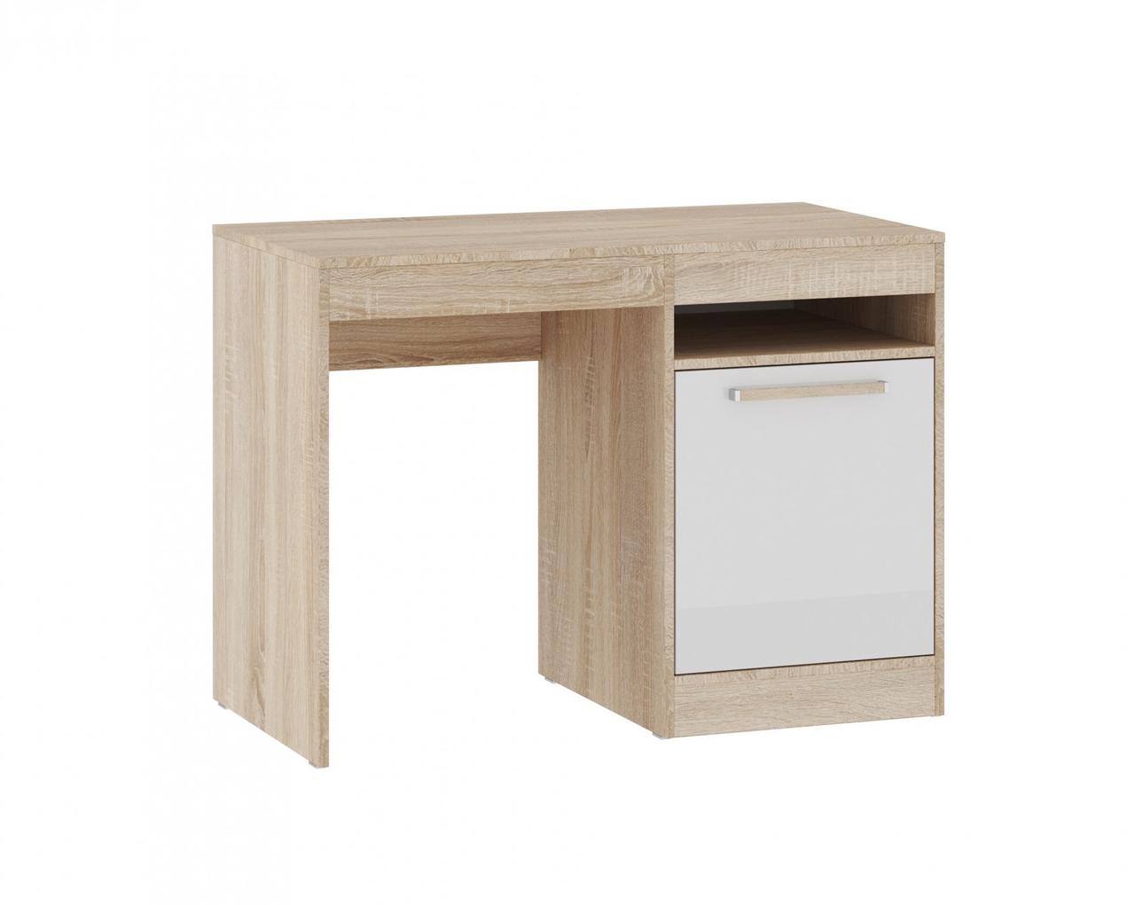 Письменный стол "Оксфорд" с просторной столешницей - удобный вариант для обустройства домашнего рабочего места. Стол оборудован закрытой тумбой с полками и открытой нишей. Сочетание белого фасада и натурального древесного декора позволяют выглядеть модели актуально и современно.