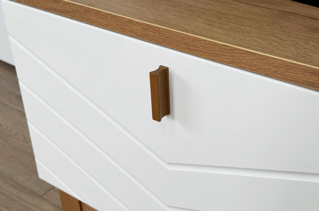 Практичная и стильная тумба в скандинавском стиле для организации хранения в гостиной, спальне или прихожей. Модель отличается продуманным дизайном, использованием качественных материалов и универсальной цветовой гаммой.