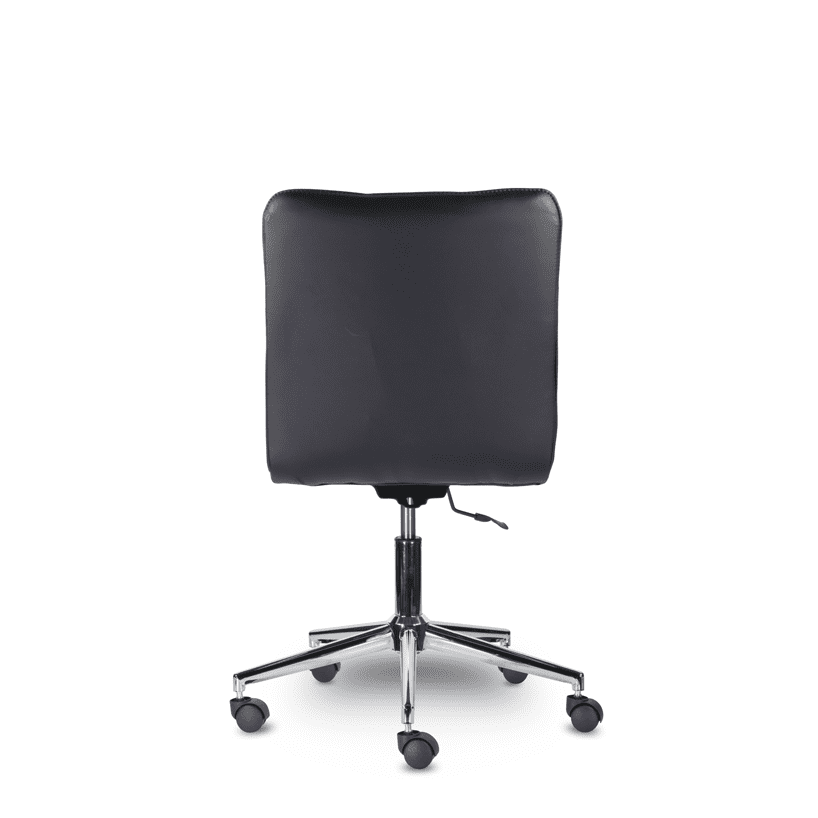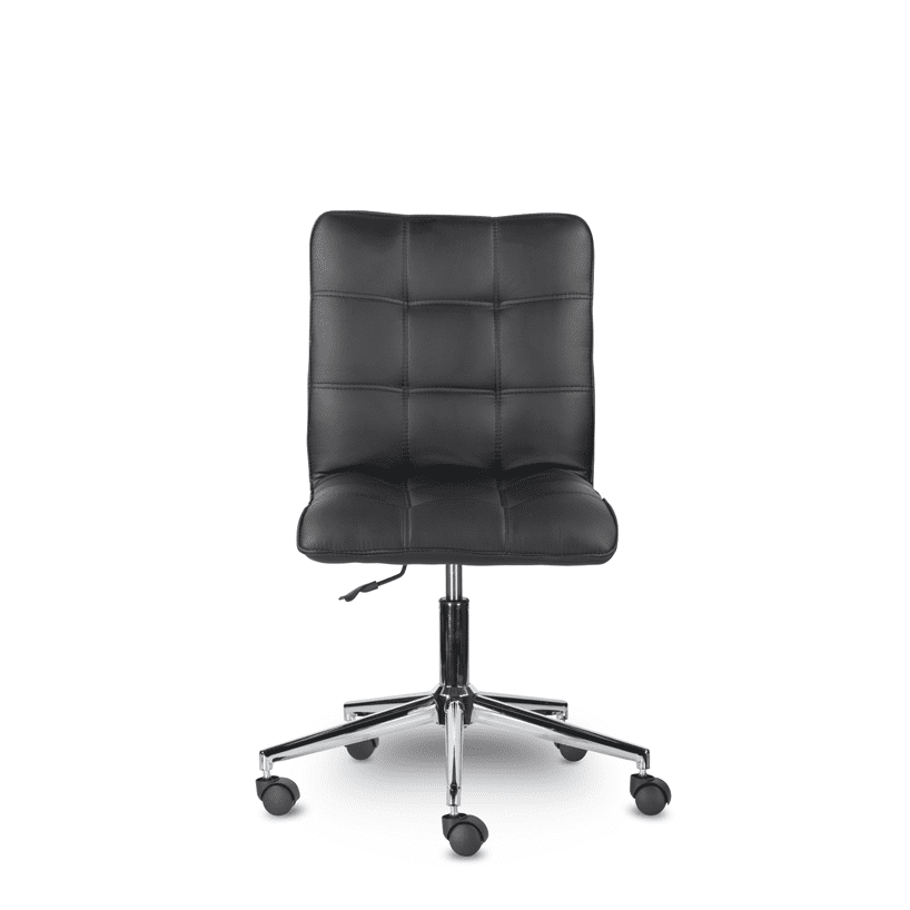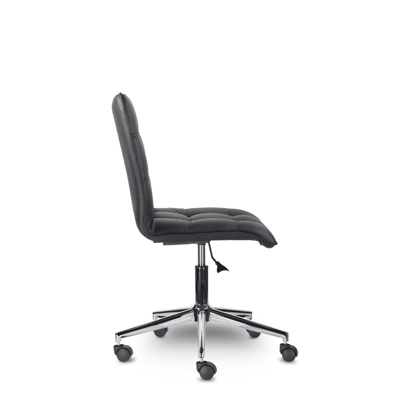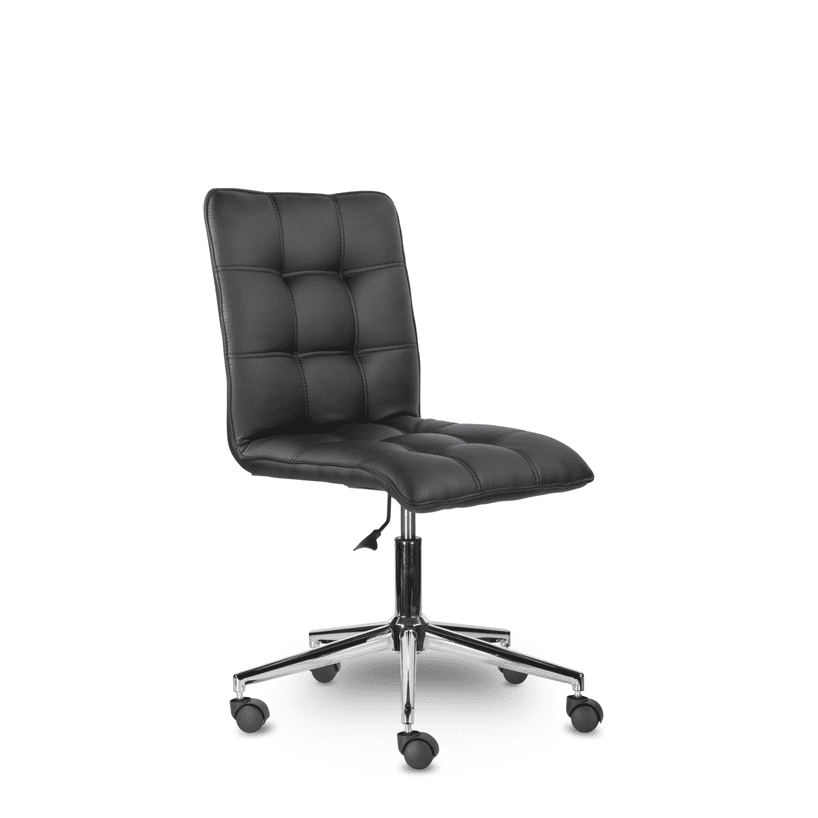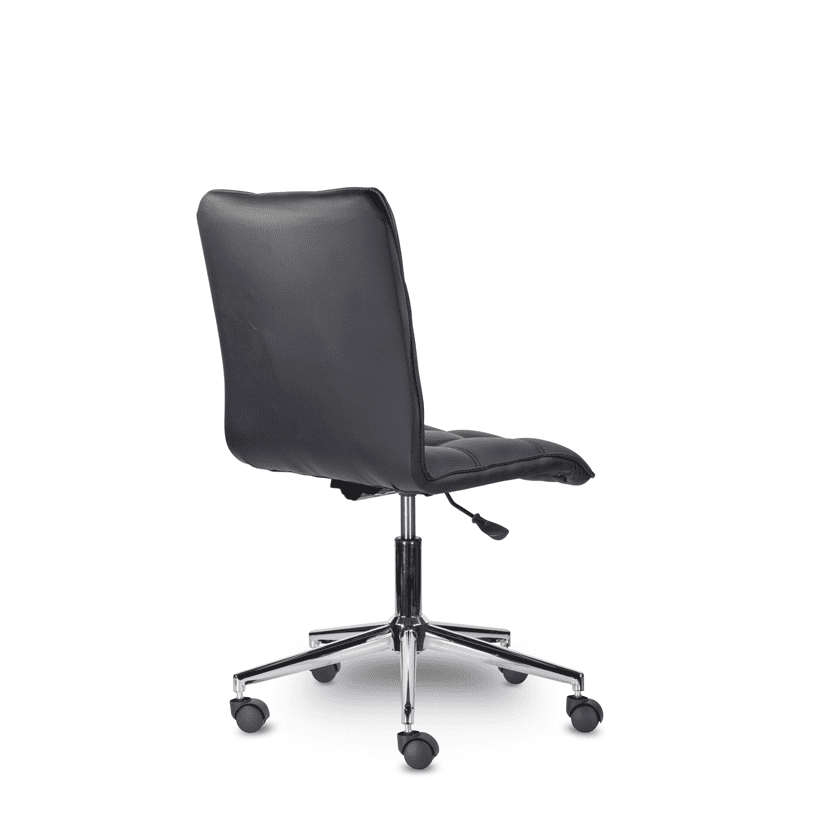Кресло уникальной формы. Мягкое сидение и мягкая спинка с горизонтальными и вертикальными прошивками. Сочетание экокожи и металлического каркаса делает модель современной. Ролики с полиуретановым покрытием.