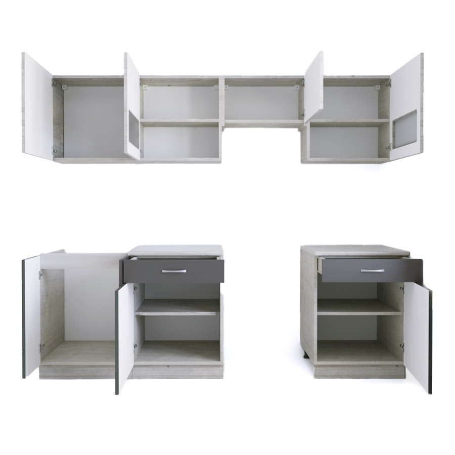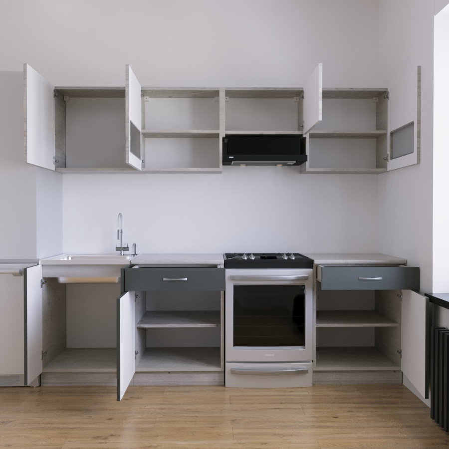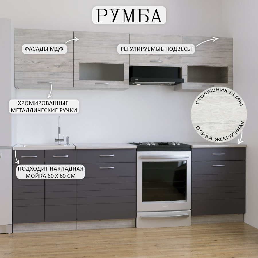 Кухня Румба - полнофункциональная кухня, скомплектованная всеми необходимыми кухонными блоками. Сочетание эстетики минимализма и функциональности! Отсутствие лишних деталей, простота дизайна, стильное цветовое оформление, просторная рабочая поверхность и вместительные шкафы и ящики - это то, что отвечает всем заданным требованиям современной кухни!