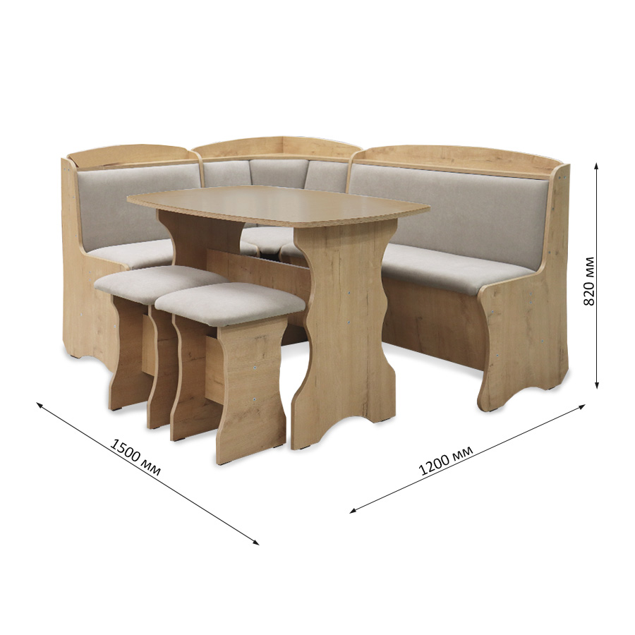 Обеденная группа, Дуб Бунратти  (скамья, стол, табурет), ткань в ассорт