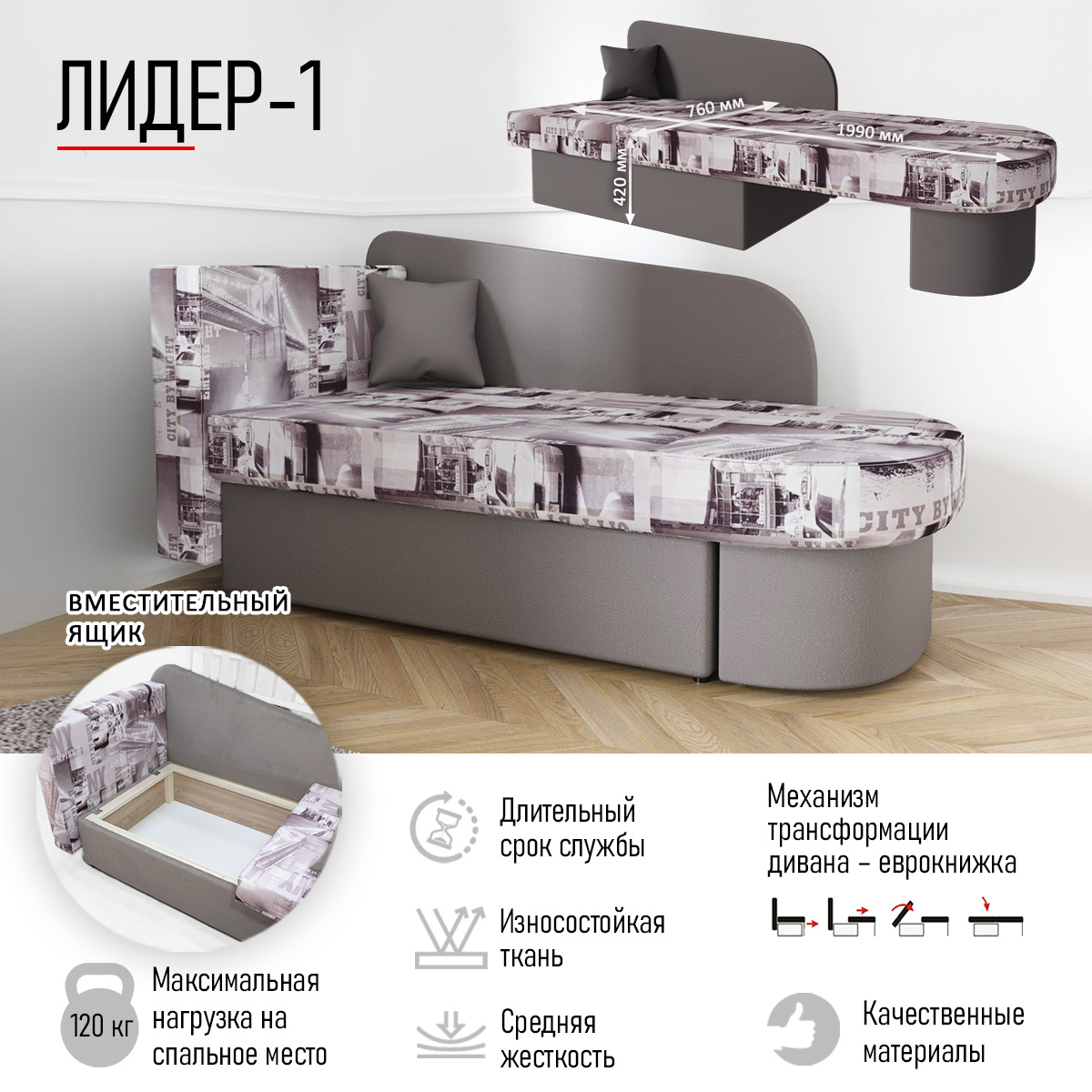 Диван-кровать "Лидер 1" СITY MY 005 C-1 Cabrio 4 ПРАВАЯ