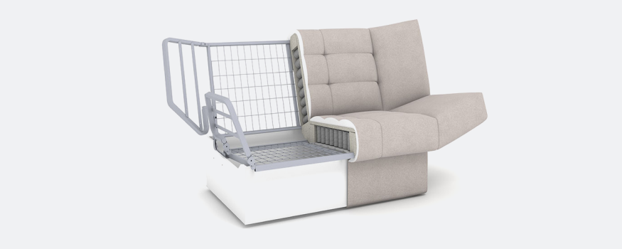 • Проверенный механизм: Надежный «клик-кляк» позволяет одним движением трансформировать диван из положения для сидения в кровать, что оценят все члены семьи.