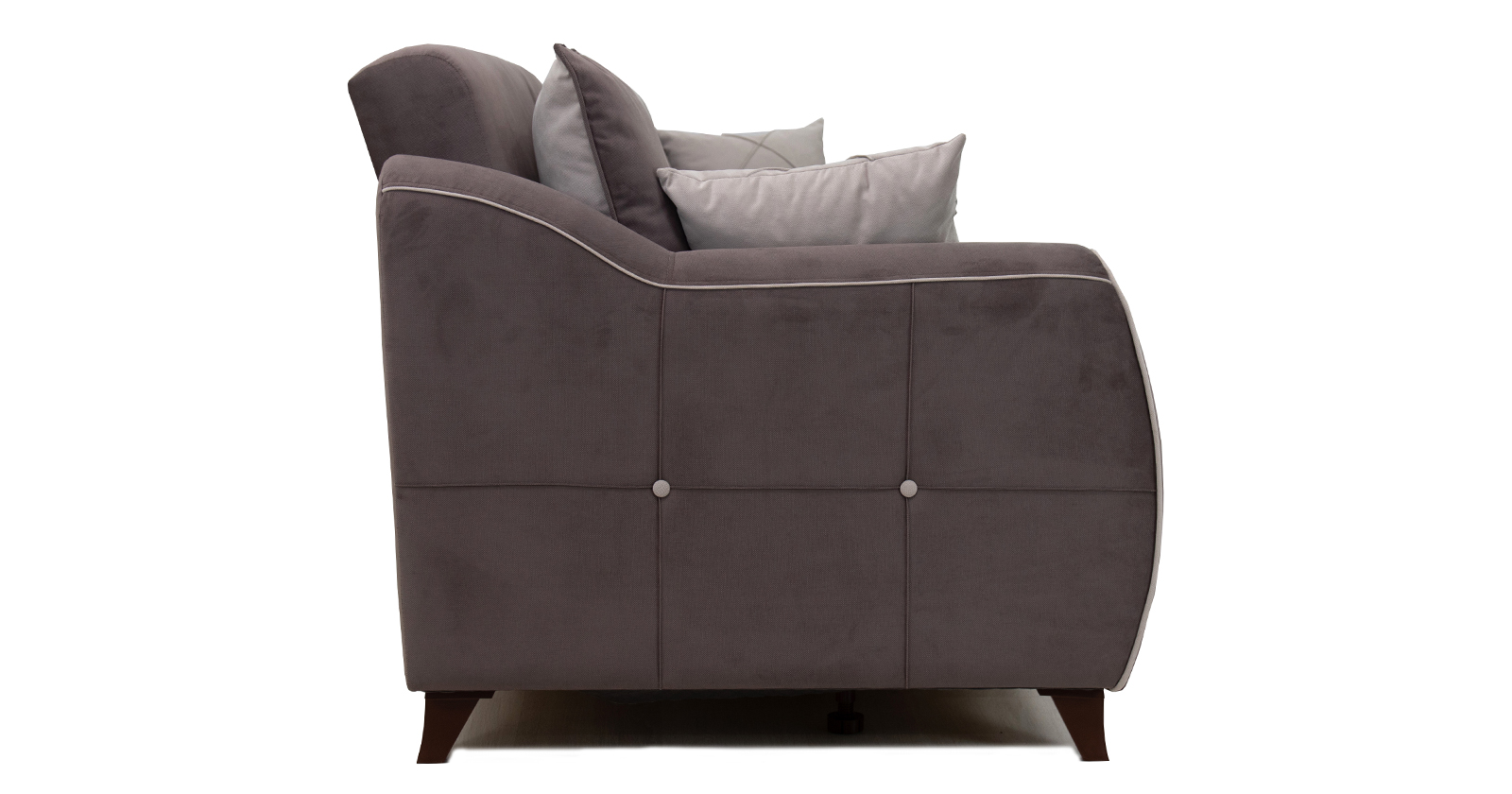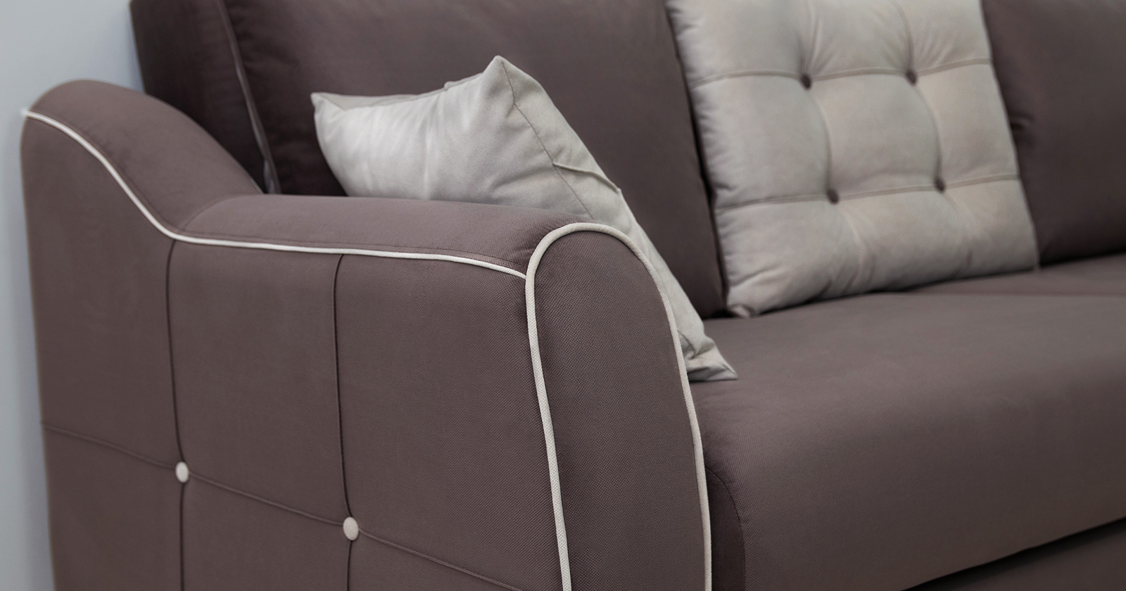 Изысканная детализация: Контрастные декоративные пуговицы с утяжкой на боковинах и спинке, а также аккуратная отделка кантом подчеркивают безупречный вкус и ремесленное качество.