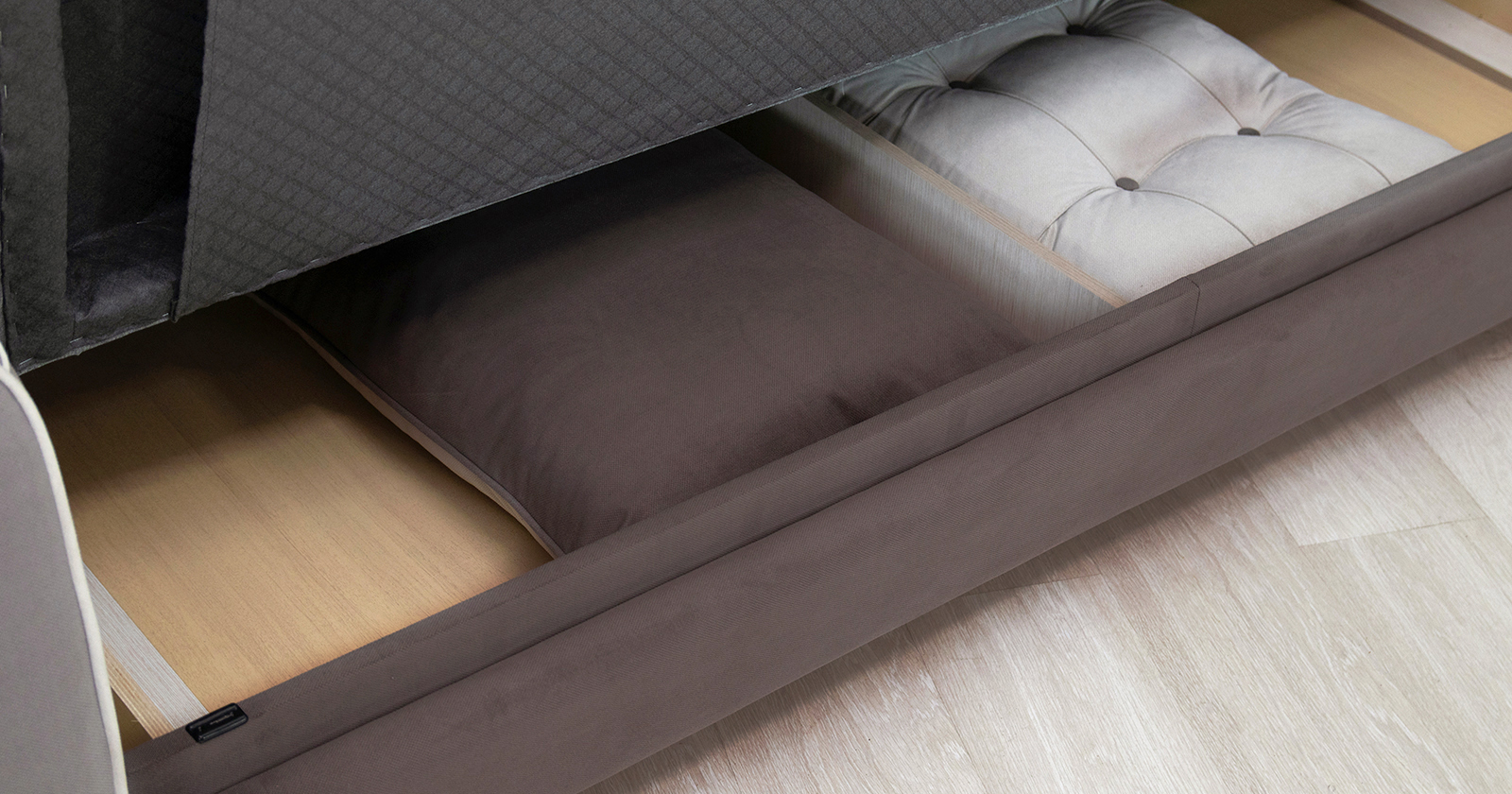 Организует пространство — под сиденьем скрывается вместительный бельевой ящик для хранения.