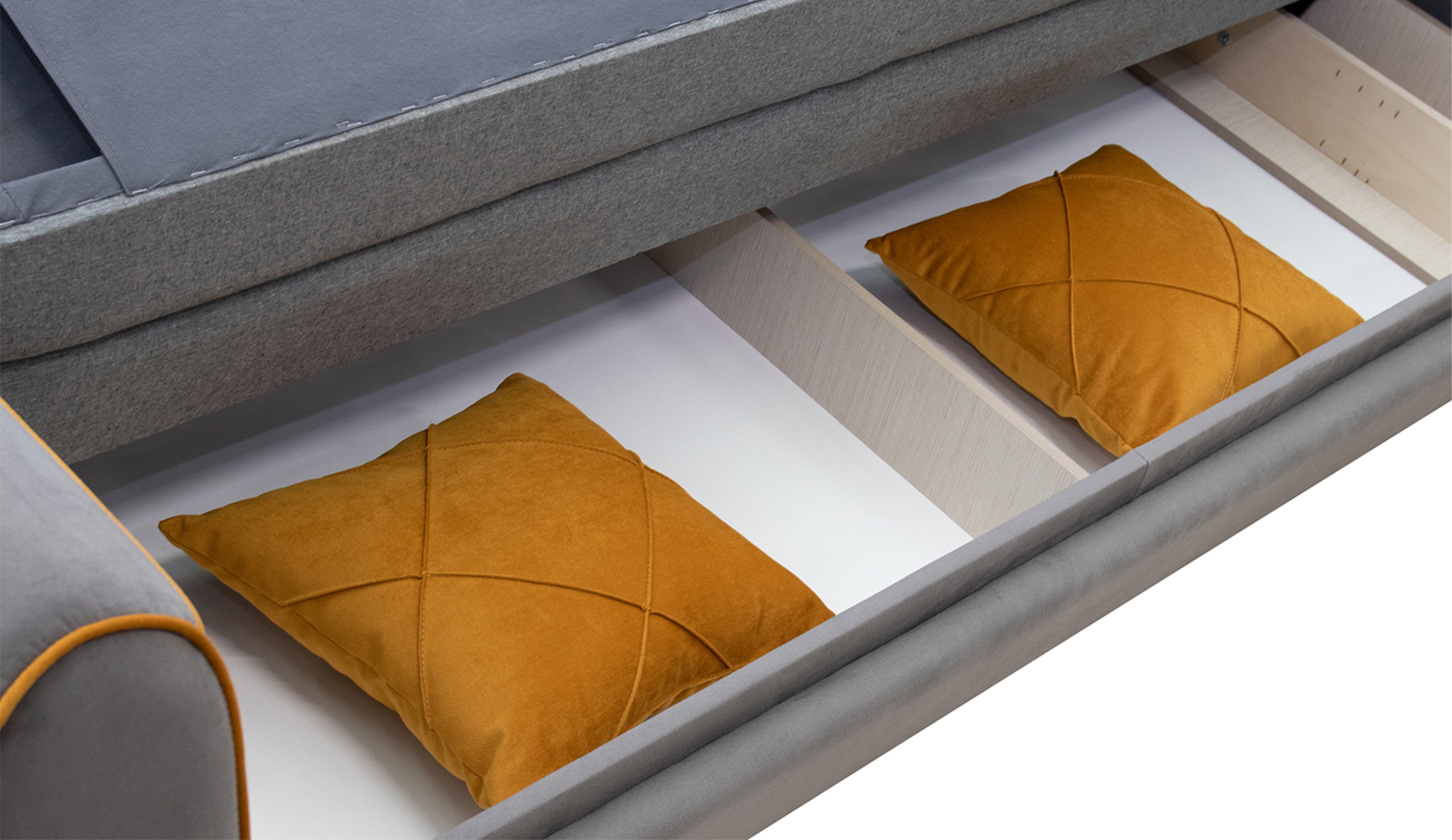 Организует пространство — под сиденьем скрывается вместительный бельевой ящик для хранения.