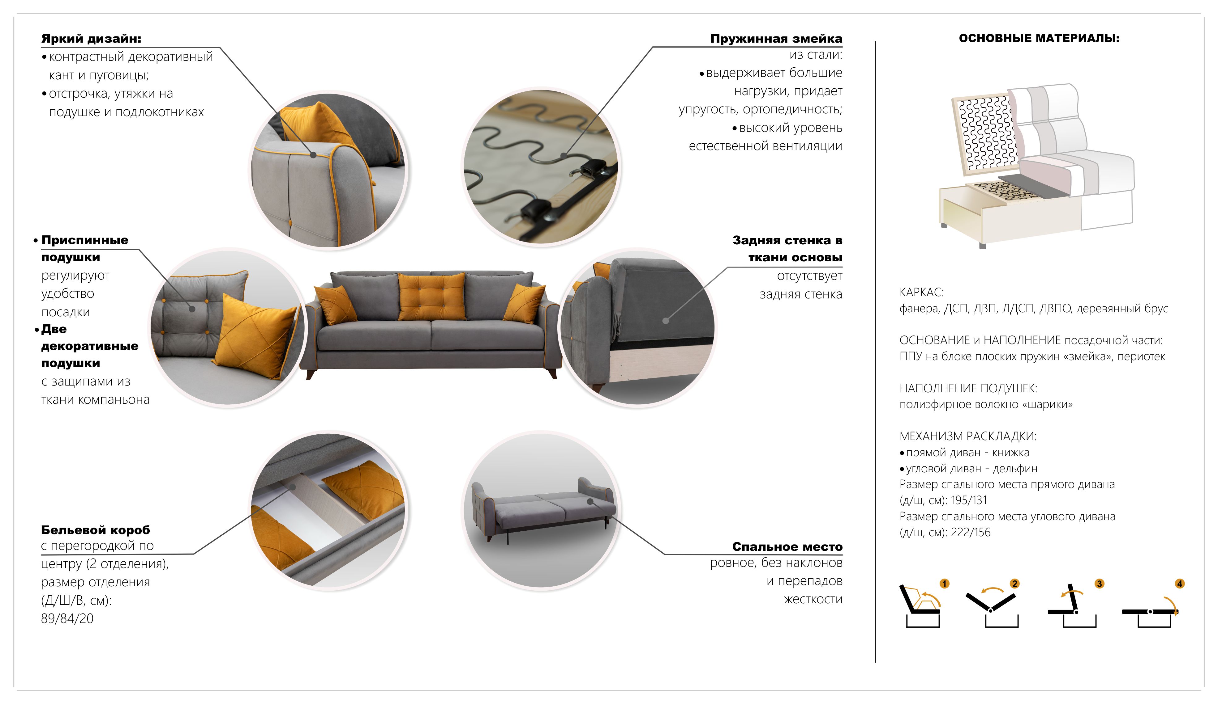 Исключительная износостойкость: Более 25 000 циклов истирания гарантируют, что диван долгие годы будет сохранять безупречный вид.
