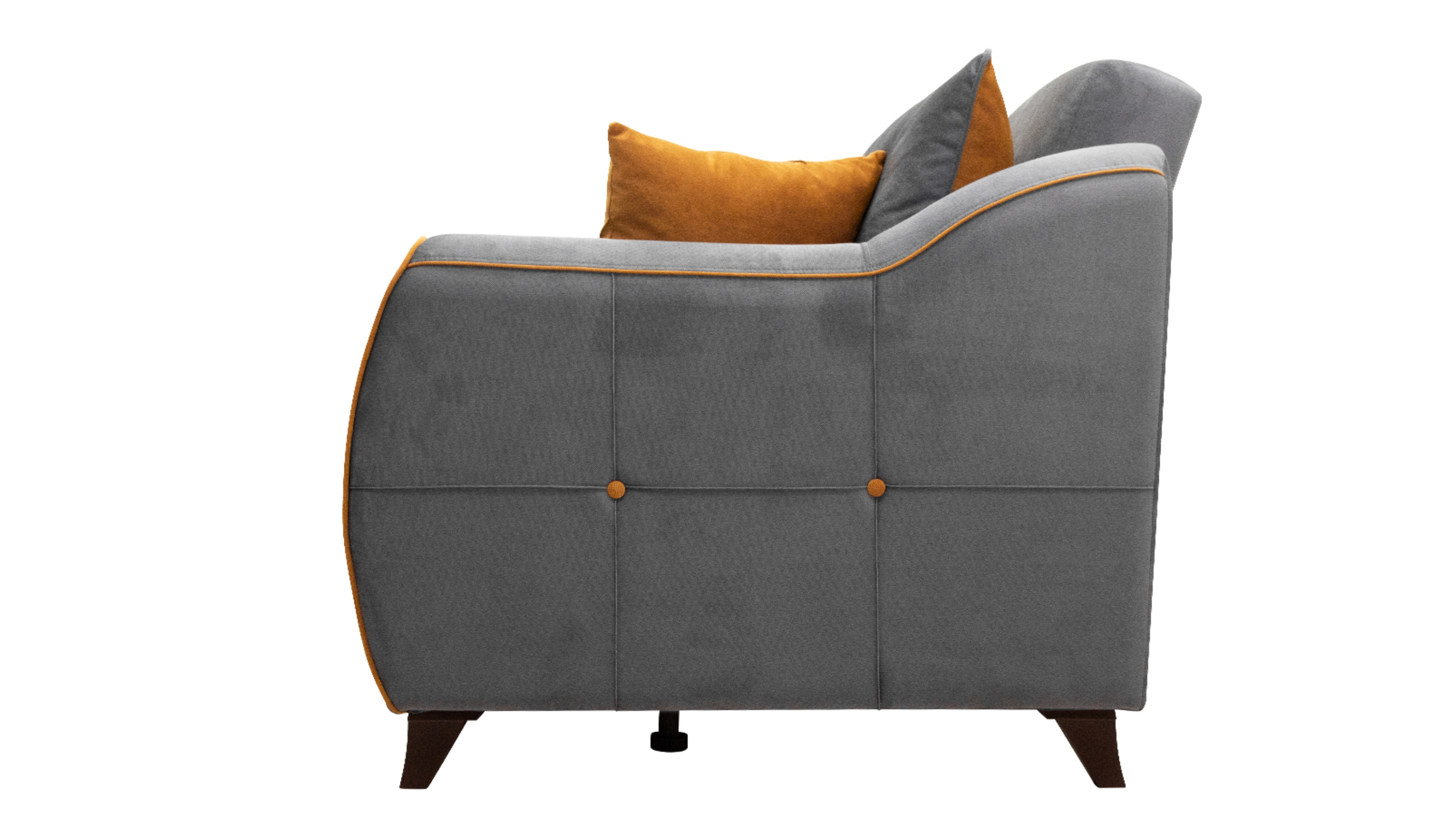 Изысканная детализация: Контрастные декоративные пуговицы с утяжкой на боковинах и спинке, а также аккуратная отделка кантом подчеркивают безупречный вкус и ремесленное качество.