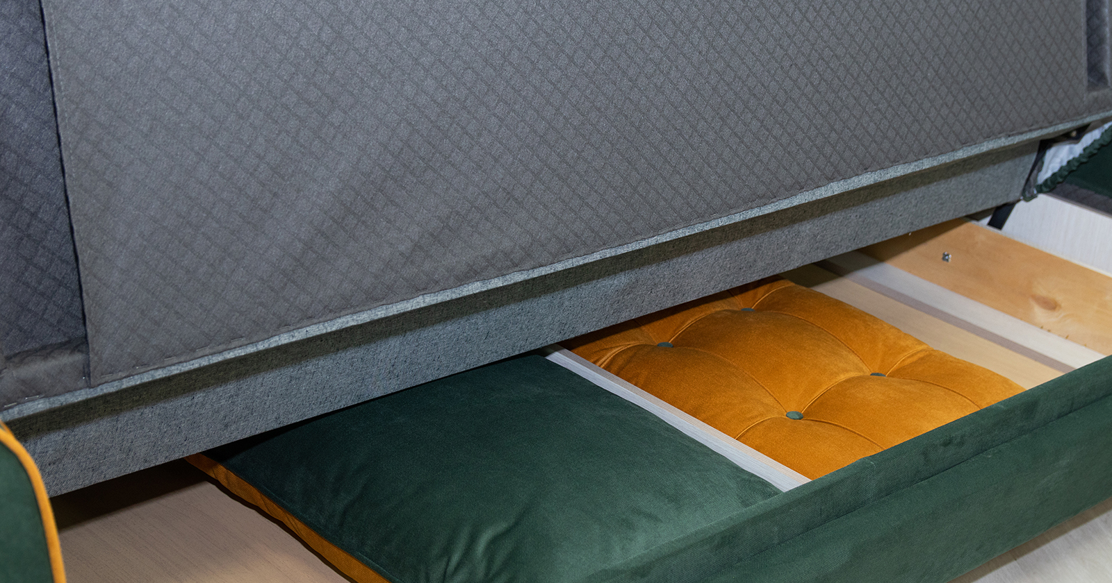 Организует пространство — под сиденьем скрывается вместительный бельевой ящик для хранения.