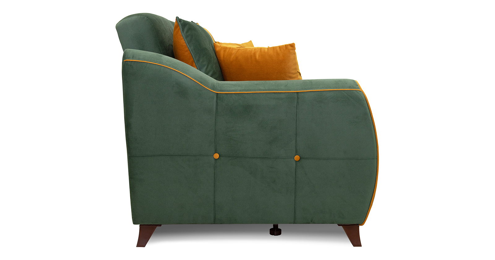 Изысканная детализация: Контрастные декоративные пуговицы с утяжкой на боковинах и спинке, а также аккуратная отделка кантом подчеркивают безупречный вкус и ремесленное качество.