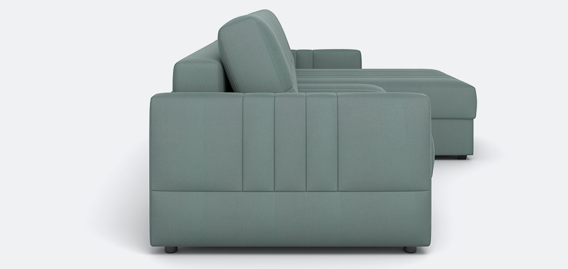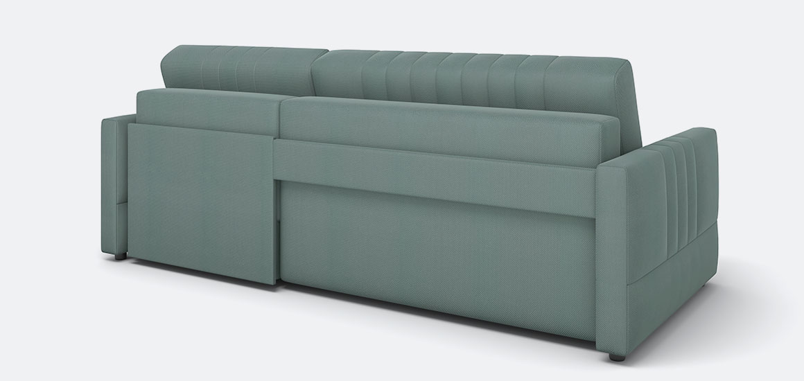 Функция зонирования — задняя спинка выполнена в основной ткани, что позволяет размещать диван в центре помещения.