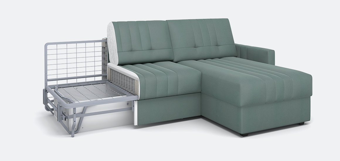 Конструкция дивана базируется на прочном металлокаркасе, обеспечивающем долговечность, сохранение геометрии и исключающем скрипы. Механизм трансформации «пантограф» гарантирует легкое и плавное раскладывание, а матрас с блоком независимых пружин формирует комфортную спальную поверхность для здорового сна.