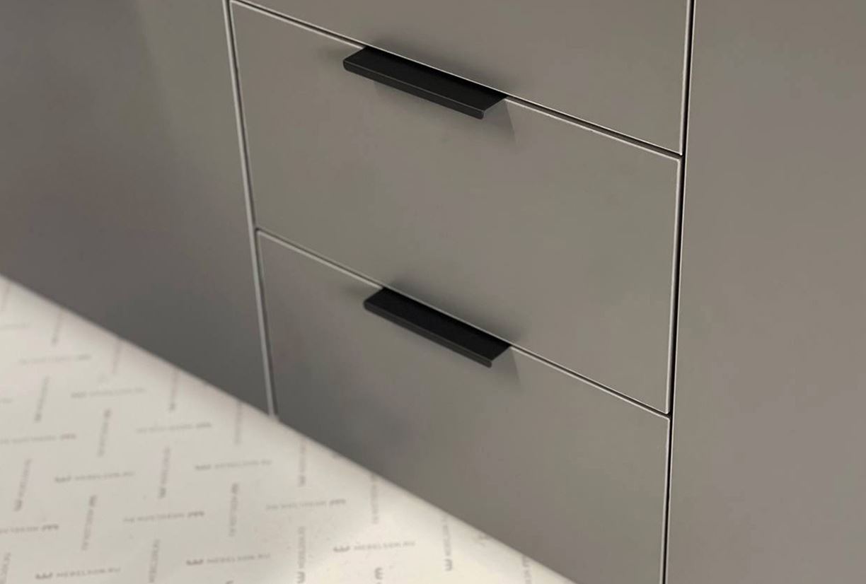Фасады: ЛДСП 16 мм, декор «графит серый», с декоративной вставкой из МДФ 19 мм (фрезеровка «вельвет»).