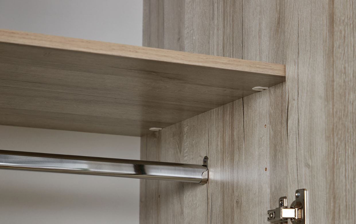 Трехстворчатый Scandica Oslo 444 Шкаф для одежды и белья Фасад Зеркало/Стандарт будет уместен в любой спальне. Глухие фасады с ручками из массива дерева декорированы рамочной вставкой с раскладкой. Зеркальный фасад с маленькими металлическими ручками – находка для любой спальни. В этом шкафу есть все необходимое для размещения ваших вещей: стационарная штанга для плечиков длиной 768 мм, верхняя полка, ряд регулируемых полок для белья. Распланировать место Вам помогут всевозможные органайзеры, корзины для белья, коробки.