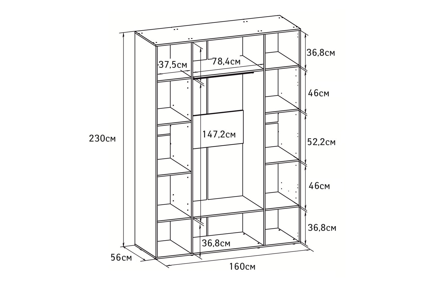 Данная модель - самый большой и вместительный шкаф серии Scandica Oslo. Позволяет рационально использовать пространство для хранения: две полки - ниши по центру, ряд регулируемых полок с обеих сторон и стационарная штанга для одежды. Большое зеркало во весь рост не только выполняет свою основную функцию, но и добавляет яркости и света, визуально расширяет пространство. Современный дизайн шкафа гармонично впишется в любое интерьерное решение, как в современное, так и классическое.