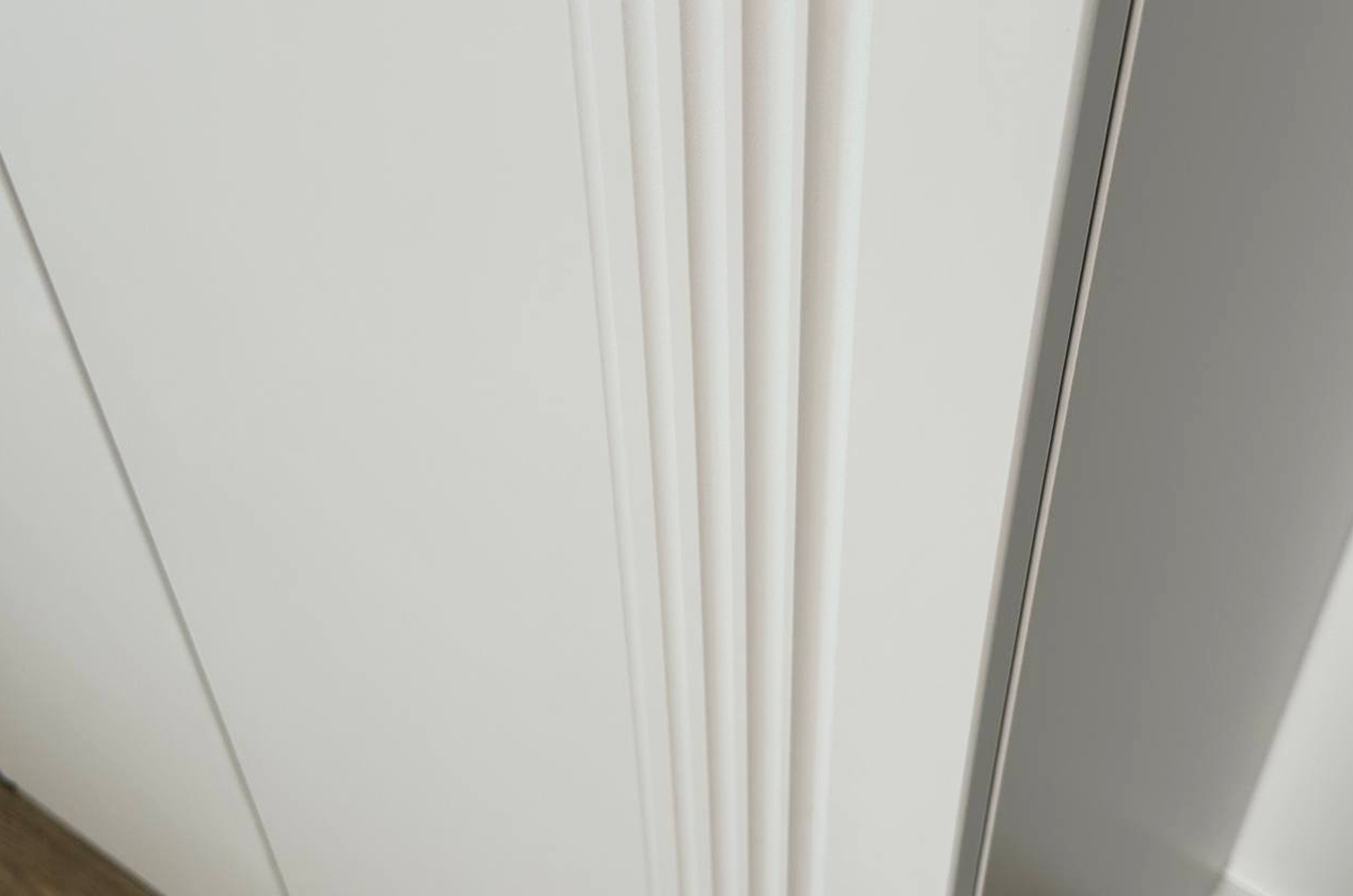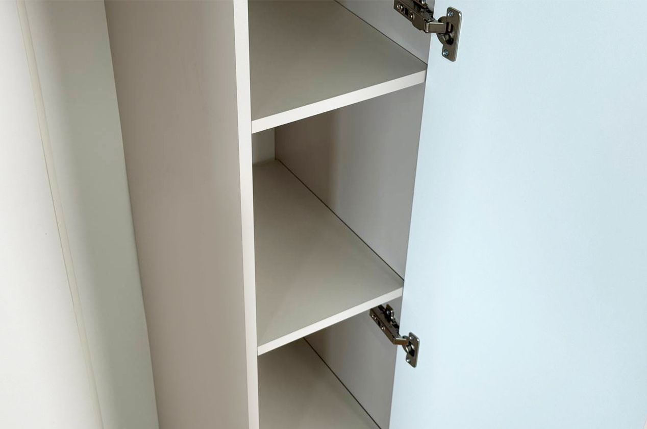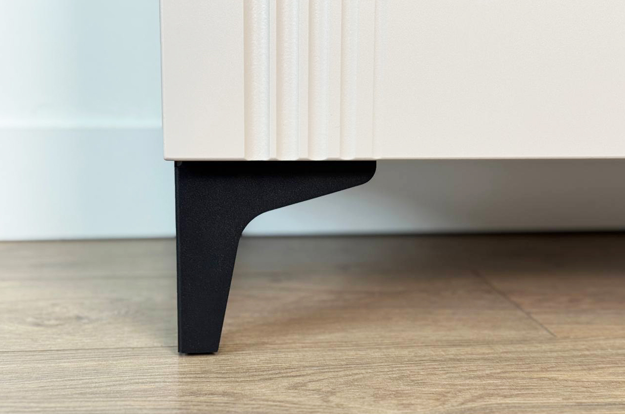 • • Стиль и долговечность: Корпус из прочного ЛДСП и элегантный фасад из МДФ с декоративной фрезеровкой и защитной пленкой ПВХ.