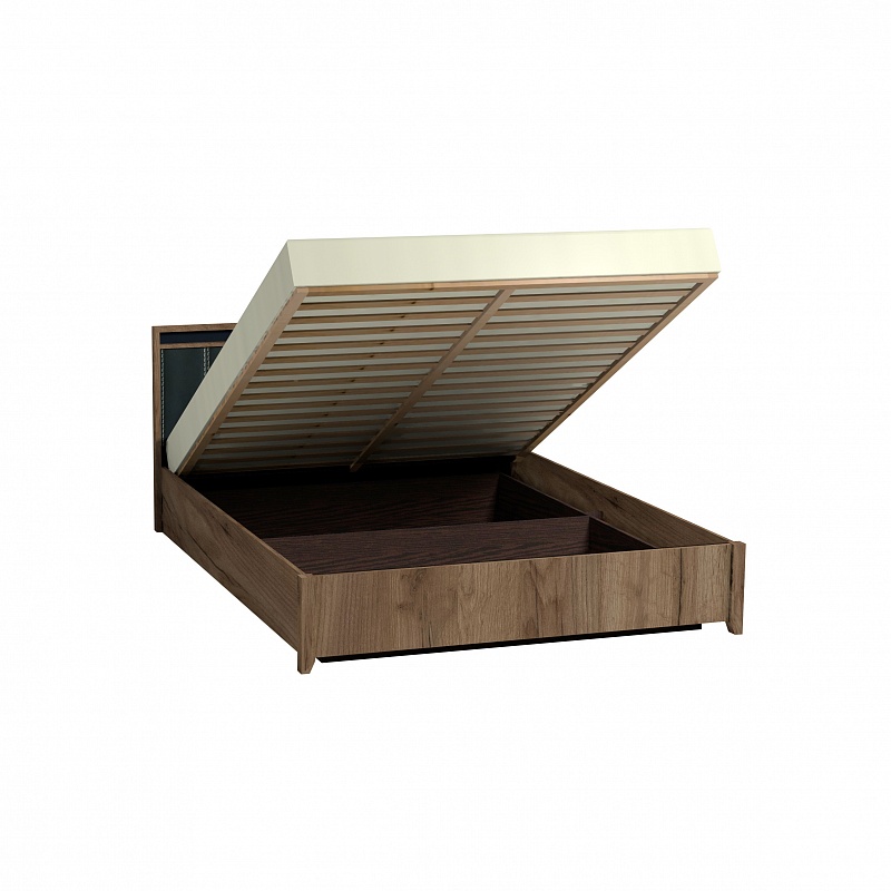 Приятный и успокаивающий дубовый декор удачно контрастирует с эффектной черной экокожей, оформленной золотой нитью, добавляя кровати индивидуальности и стиля. Еще одним плюсом экокожи является то, что она легко чистится и не выгорает на солнце.