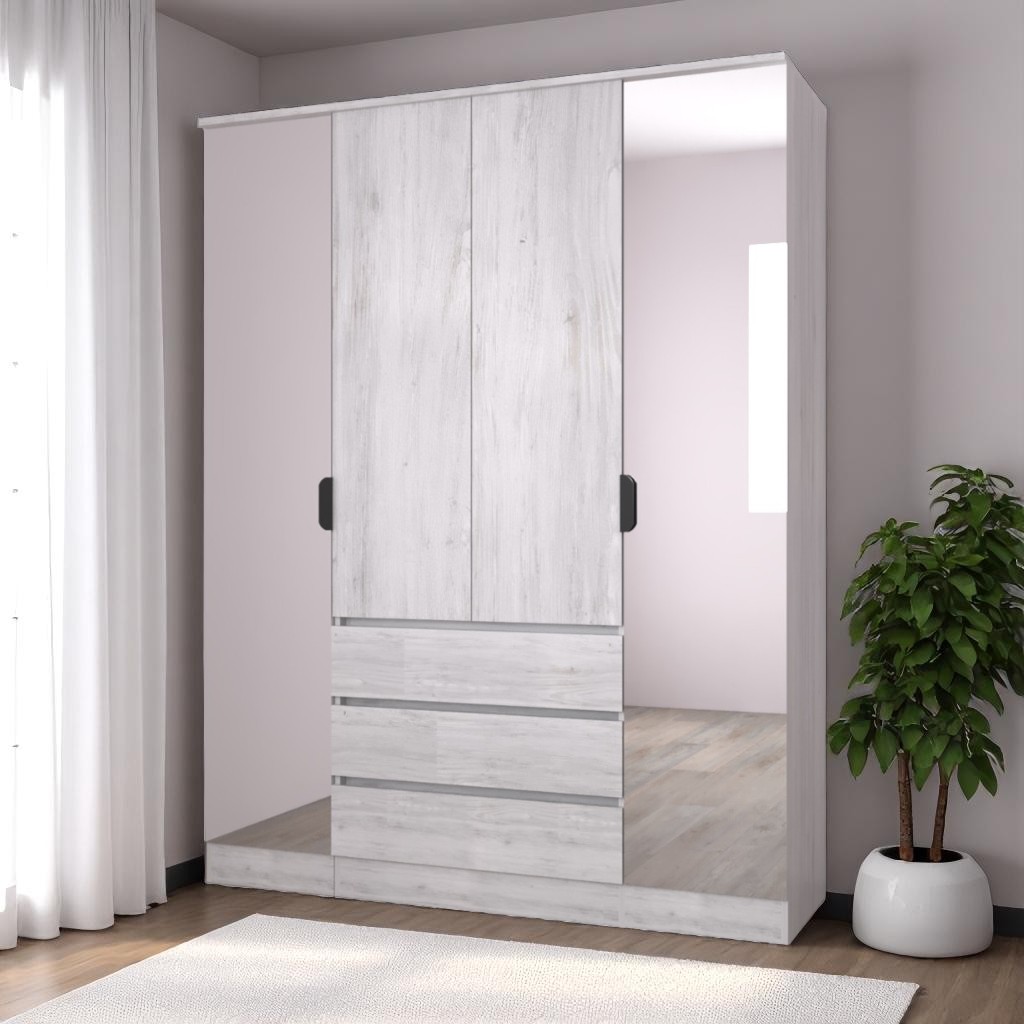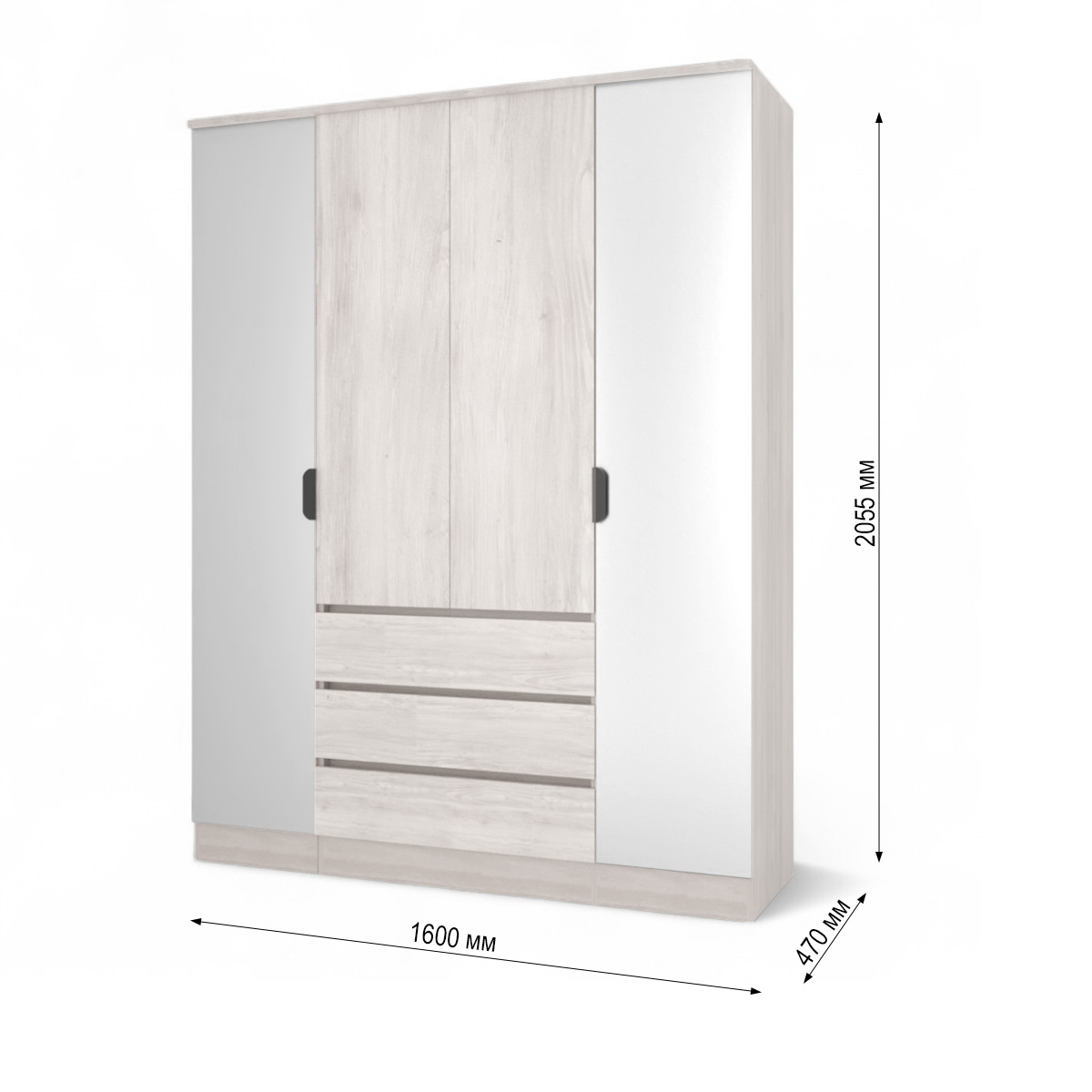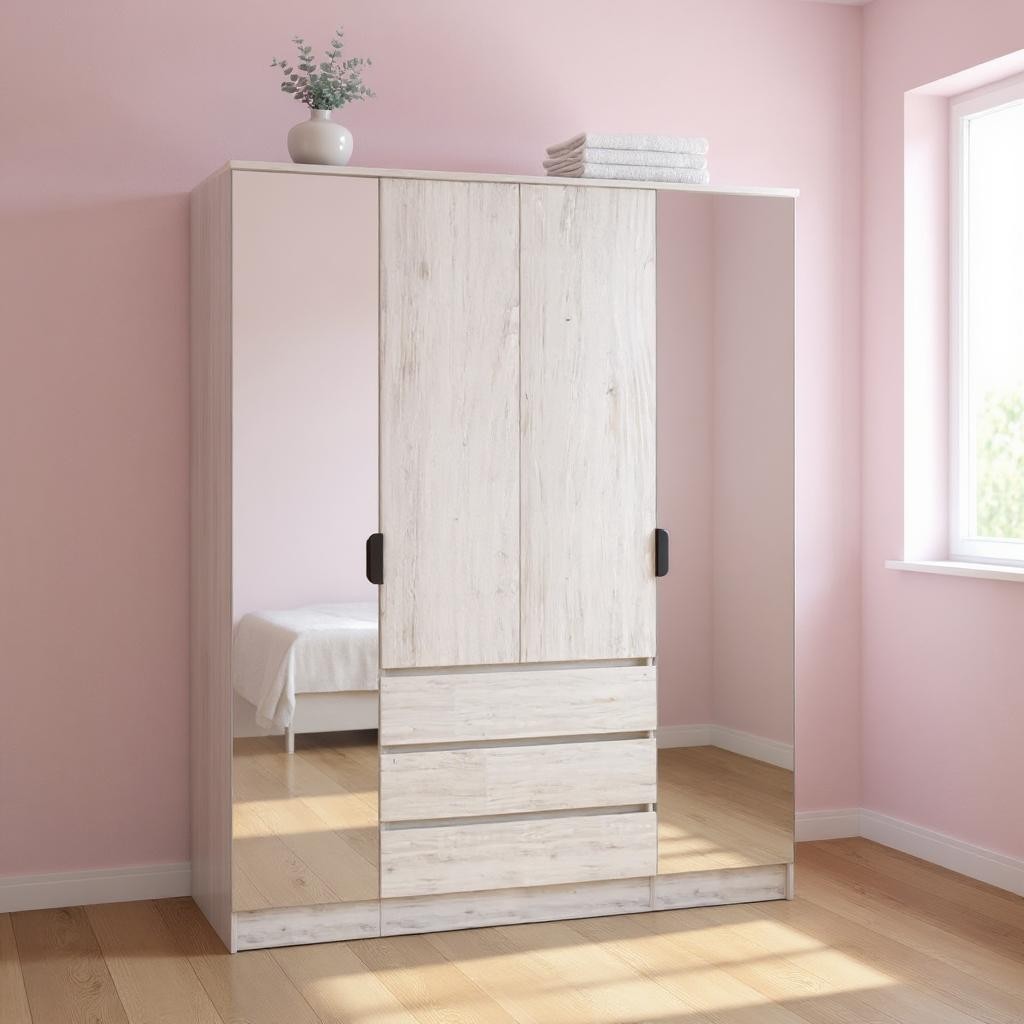 —Шкаф ВЕНСЕН Сосна Лофт 4-х дв., 3 ящ, Зеркало / Сосна Лофт